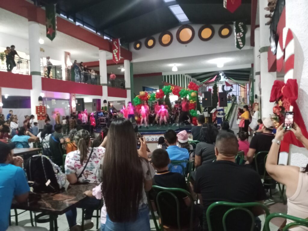 Posteriormente, la Academia Victoria’s realizó la puesta en escena de su musical navideño, seguidos de Gaiteros del Song, mientras que paralelamente se realizaba la entrega de cartas al popular santa y los pequeños además disfrutaban de los juegos y castillos inflables.
