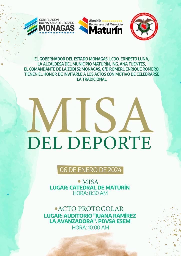 Cada 6 de enero se realiza la conocida Misa del Deporte con la finalidad de bendecir a los deportistas de Venezuela, que cada año aspiran a superar logros a nivel colectivo e individual.