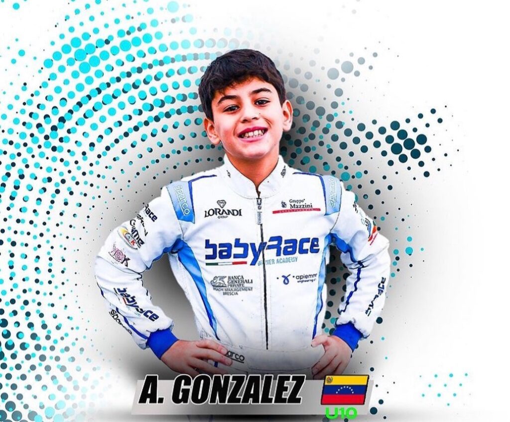 El niño venezolano de 10 años ha conseguido 18 podías en los últimos 18 meses, siendo campeón nacional de Easy Kart, estas grandes actuaciones le han válido ser la imagen de empresas como Krs Lubricantes, Dalvito y Caja Caracas Casa de Bolsa, el apoyo ha sido fundamental para González representar a Venezuela en el WSK Champions Cup.