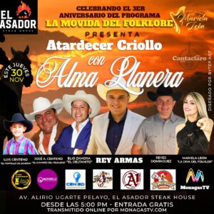 El próximo 30 de noviembre, será la gala en la tarima del Asador Steak House cómo parte del 3er aniversario...